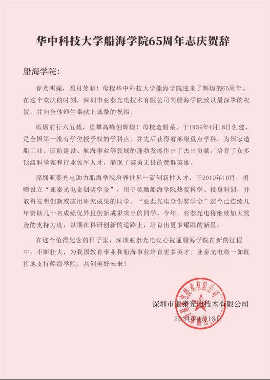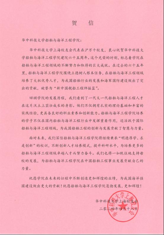 窦培林校友:热烈祝贺建院65周年,兴船报国,初心恒守!服务行业,矢志不渝!感恩母校,强国有我!值此院庆之际,祝学院桃李芬芳,英才辈出,助力国家海洋强国建设!