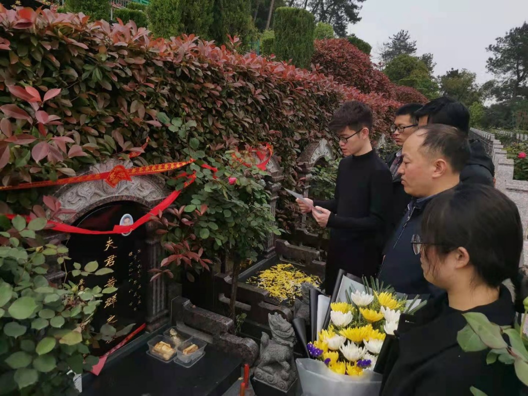 2019级“黄群班”教师班主任刘敬喜教授、辅导员靳丰富以及本科2017级、2018级、2019级“黄群班”的6位学生代表,前往武汉蔡甸区玉笋山陵园祭奠黄群同志。在校友墓碑前,全体成员向黄群同志深深鞠躬、默哀,表达全院师生对他的深切追思与敬仰。学生代表向黄群同志墓碑敬献了鲜花,三届“黄群班”的学生代表依次诵读了他们写给黄群同志的追思信。他们在信中写道:“只有奋斗的一生才称得上幸福的一生,您放心,我们会接续您的奋斗,树立坚定信念,锤炼担当意识,培养奉献精神。”