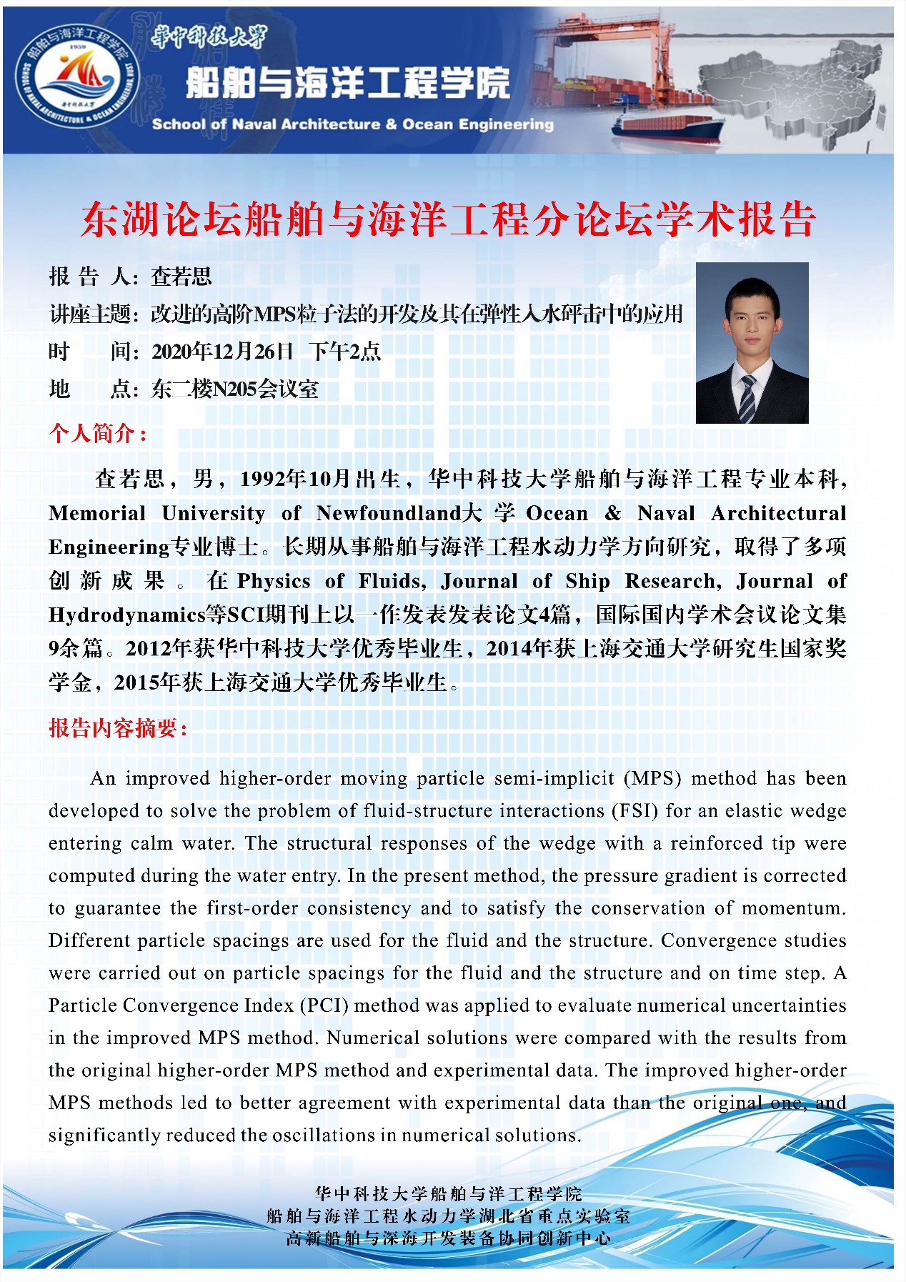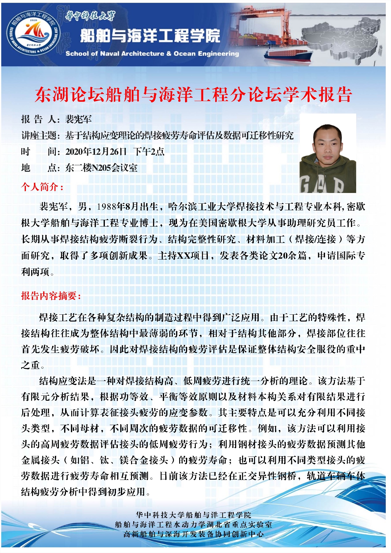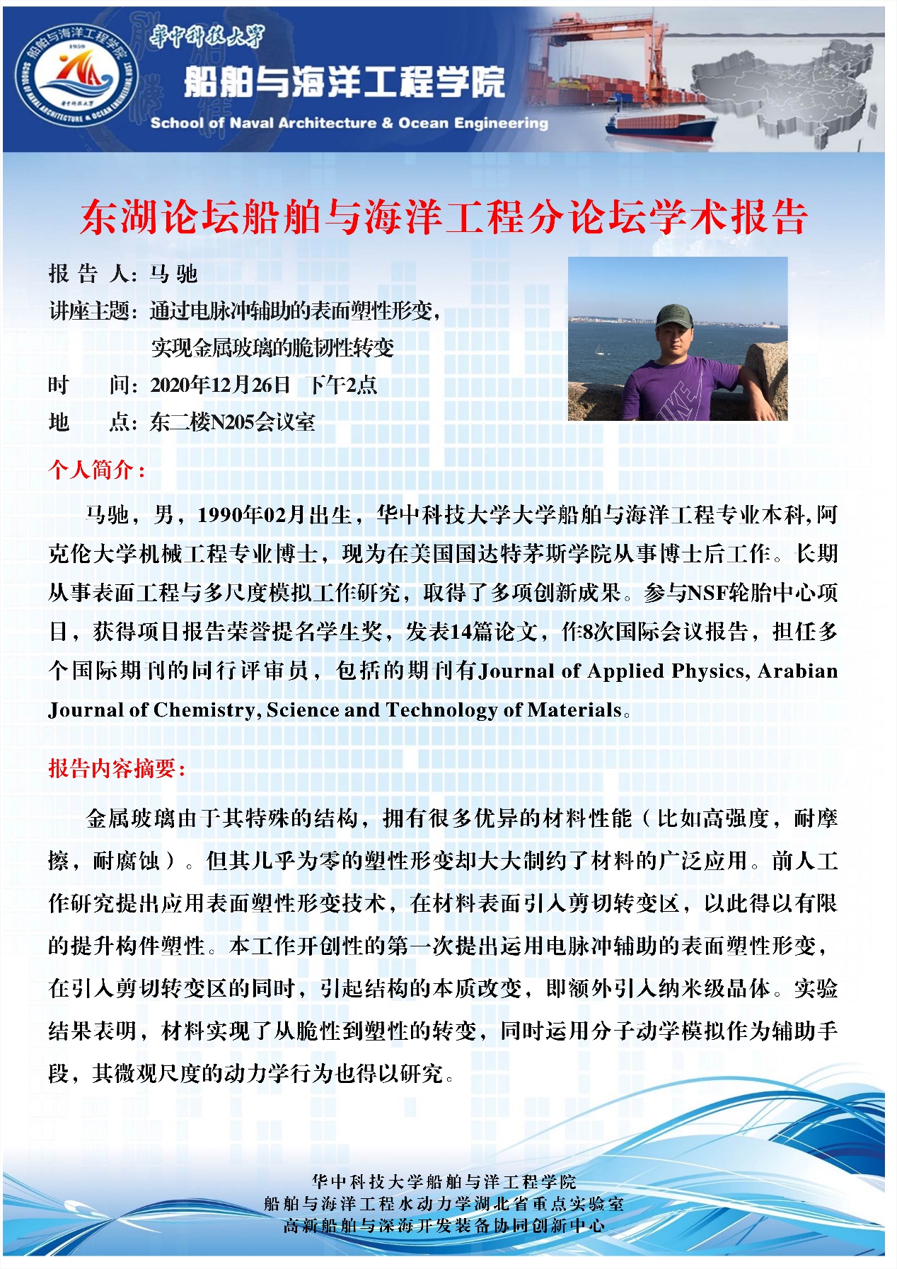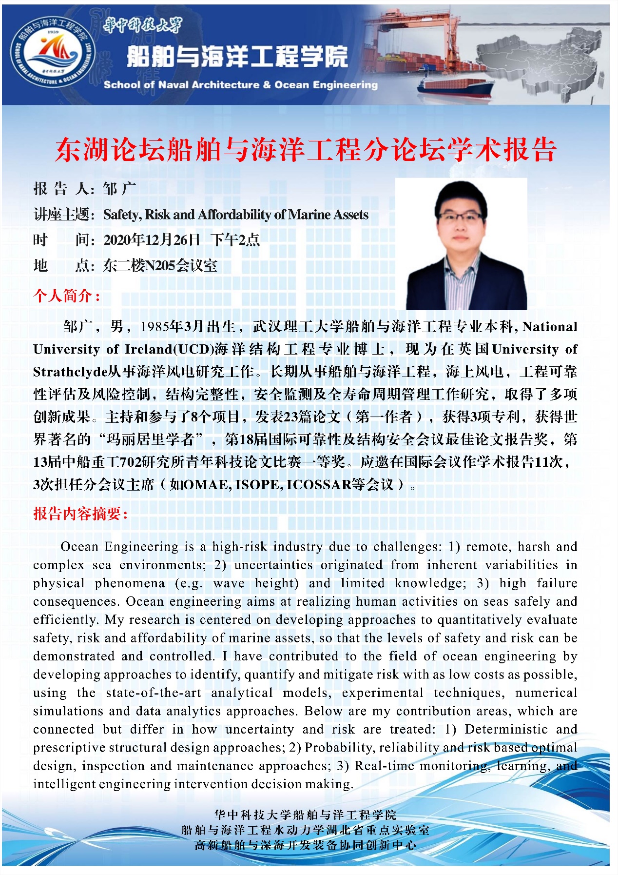 师生开展深入的学术交流与合作,更希望各位优秀青年学者能够加入学院共促船舶与海洋工程学科发展。