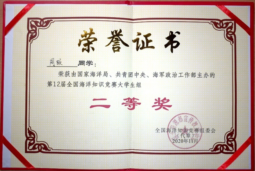 我校自2016年首次参赛以来,依托大学生科技节,举行全国海洋知识竞赛校内选拔赛,选拔选手参加总决赛,共获总决赛二等奖3人次、三等奖1人次,并连续三年获“全国海洋知识竞赛优秀组织单位”称号。