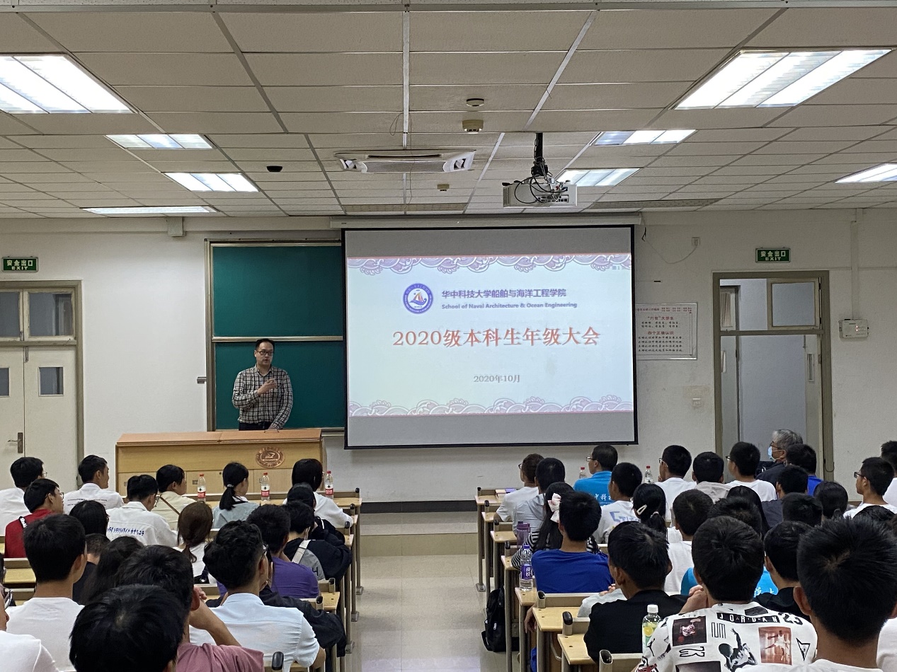 船海2020级全体本科生参加会议,研究生助理班主任刘文乐、刘羿阳列席并旁听了会议。
