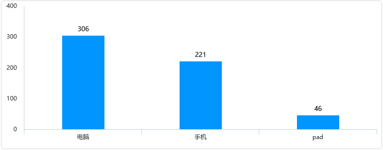 在电子设备使用方面(多选题),超过七成的同学习惯使用电脑(76.19%),约半数的同学借助过手机的相关app(55.39%),仅有11.53%的同学选用了其他设备。问卷结果符合日常生活经验,电脑屏幕大、呈现效果好,方便观看电子教材和记录整理笔记,所以得到了更多同学的青睐。