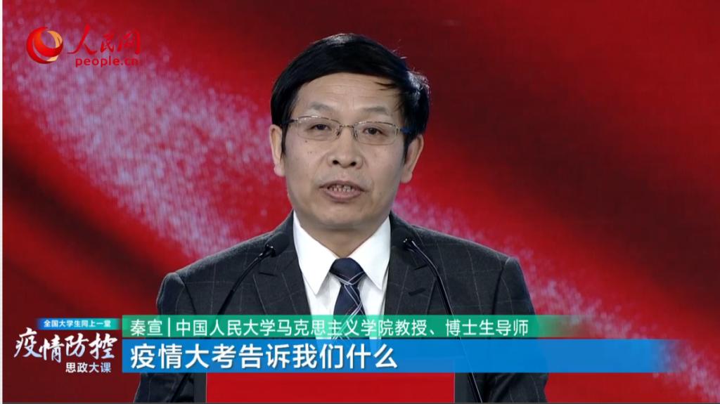 中央财经大学马克思主义学院教授冯秀军以“战‘疫’里的青年责任与担当”为主题,深情讲述这场疫情中勇敢前行的“逆行者”,用一个个感人实例引导大学生群体担当历史使命,将青春梦想扎根祖国的广袤大地。