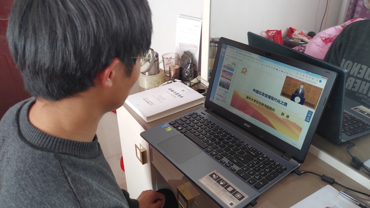 特殊时日,线上聆听难得之课堂;远程听学,家中目睹大师之风采。短短几小时的课程,深深触动着我。作为一名华中大学子,感受到学校在抗击疫情中付出的巨大贡献、巨大牺牲,我们同舟共济、齐心协力、抗击疫情;作为深处疫情中心的学校学生代表之一,感动于清华大学等国内高等学府对我们武汉学生的深切关怀,我们天涯比邻、心心相印、同情相成;作为一名中共党员,感慨于面对突如其来的疫情爆发出来的强大合力,我党上下一心、众志成城、守护生命。党课已然结束,成长之路却才刚刚开始,未来的道路中,我会努力从此次党课中汲取成才的磅礴力量,以聚萤积雪的态度、坚忍不拔的毅力、只争朝夕的劲头,为打赢疫情防控阻击战,实现中华民族伟大复兴贡献青春智慧和力量。