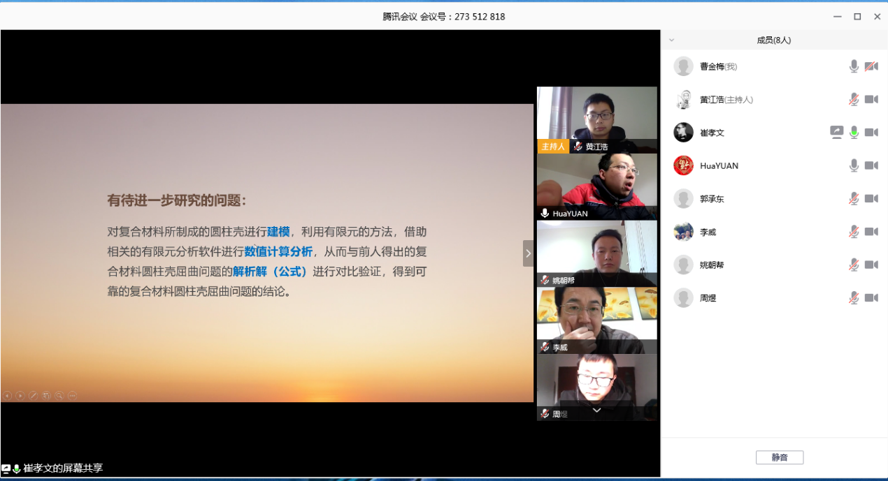 在这个特殊的时刻,虽然我们无法面对面地讨论,但我们可以通过网络进行联系,而且线上交流效率更高,更加便捷。疫情可以阻止我们返校,但它不能阻止我们学习的热情。只要我们继续互相帮助,我们有信心一定会交出一份优秀的论文报告,并在学习上不断进步!