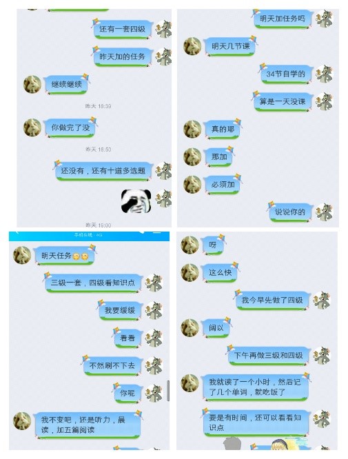 在线上专业课程完成之后,我会和班里同学打卡互相监督,利用课余时间学习其他知识,每天晚上规定第二天要完成的任务,并实时打卡,使得在家里的学习时长和学习效率大大增加。