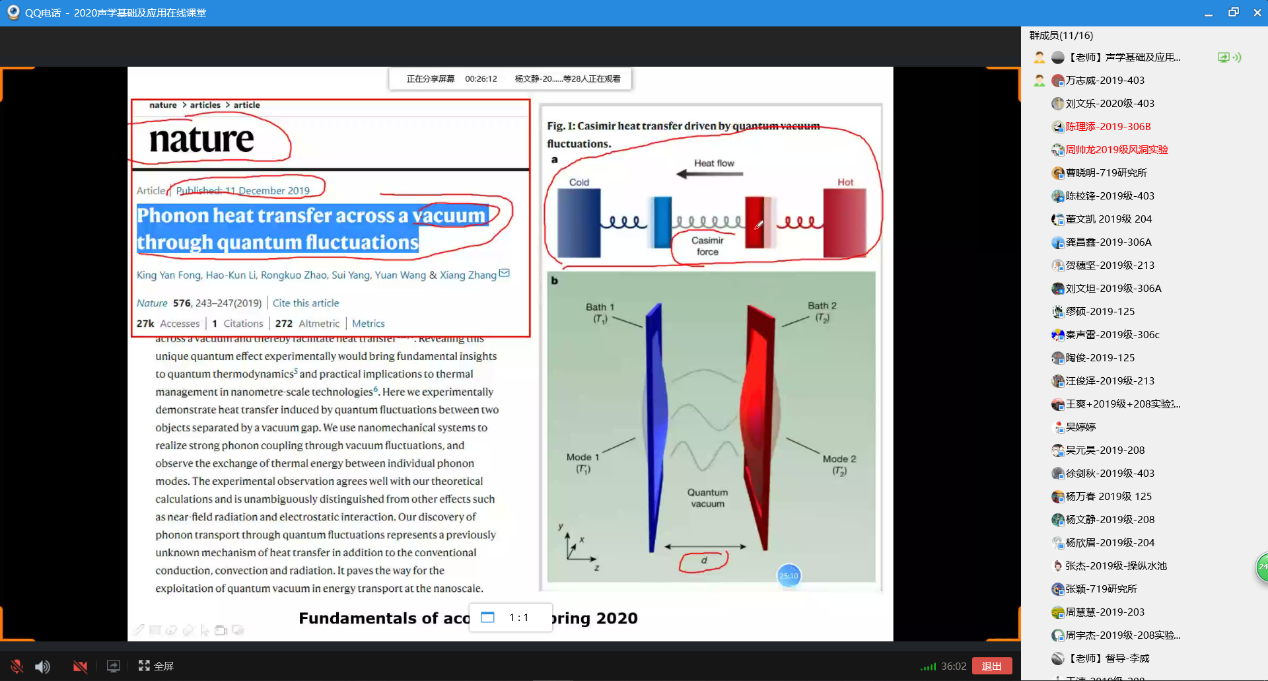 在研究生的《声学基础》课堂中,朱翔老师结合现实生活中的物理现象来讲解声学中的本质内涵,中间穿插随机课堂提问,趁热打铁,随学随练。在课间时间,同学们和老师进行交流互动,老师为同学们答疑解惑。