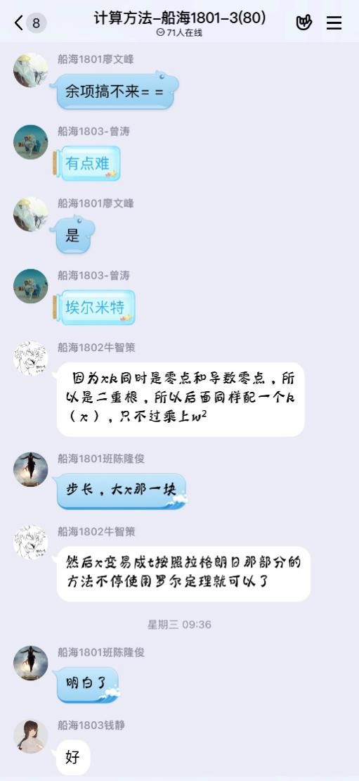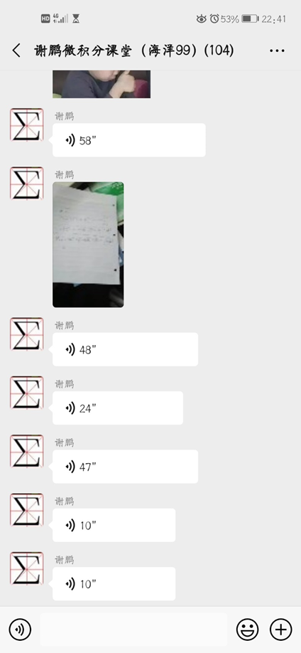 网上授课我最有感触的是大学物理和微积分,上学期上微积分的时候我每次都只能抢到最后面的座位,微积分又是那种“一步跟不上、步步脑震荡”的课,有时候我前面没听懂还在意会没做笔记,黑板上的内容就没了,所以经常是用手机拍了一大堆图片(特别是工程制图这种手写笔记真的极慢但是课程内容极多的课,每次都是一大堆照片)。于是乎“拍照从未停止,学习从未开始”。这学期微积分可以在学习通平台听录播课程,上课前老师担心我们错过,提前在微信群里面提醒大家,上课期间老师还在微信群答疑补充内容,每次都是答满两节课,真的超级负责。