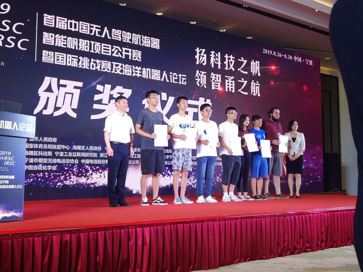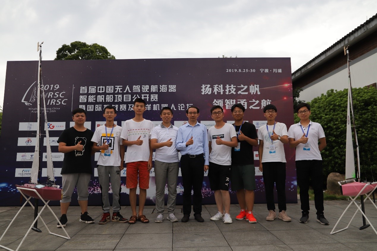 海洋机器人创新团队派出两支参赛队——HUST 1和HUST 2。在杨少龙和向先波老师指导下,两队精心准备4个月,自主研发了一套交互性强、性能稳定的无人帆船控制系统。两队赛前在喻家湖试验20余次,并于8月26日至29日在宁波月湖与其他队伍展开三角竞速、虚拟锚定与避障、协作区域搜索和捉迷藏四个项目的激烈角逐。