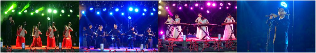 我校民乐团以一曲《鼓威》开场。鼓声阵阵,或缓或急,强烈的节奏感引领现场观众进入醉晚的音乐世界。