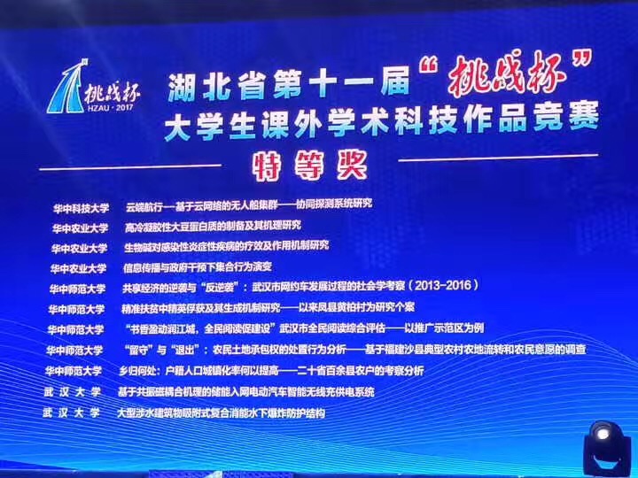 6月9日,由团省委、省科协、省教育厅、省学联联合主办的湖北省第十一届“挑战杯”大学生课外学术科技作品竞赛终审决赛暨闭幕式在华中农业大学举行。来自全省72所高校的693件作品参加本届竞赛,老王论坛