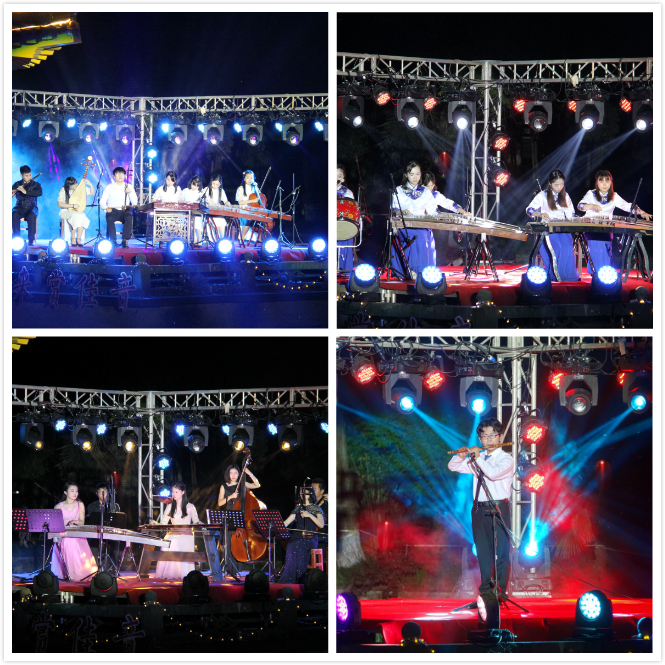 第三篇章“远音知晓梦,雅乐过晚亭”追忆古人的高尚品质与操守,品味他们曾经的辉煌。华中师范大学同学带来《伊人如梦》用伤感而深情的曲调,表达了对女子的深深的情意,描绘一场凄婉的爱情。中南民族大学同学的古筝曲《云之南》,跳动的音乐节奏,听众也不由得随之而舞。同时,华中师范大学带来一曲傣族舞蹈更是给器乐演奏会增添新的看点。