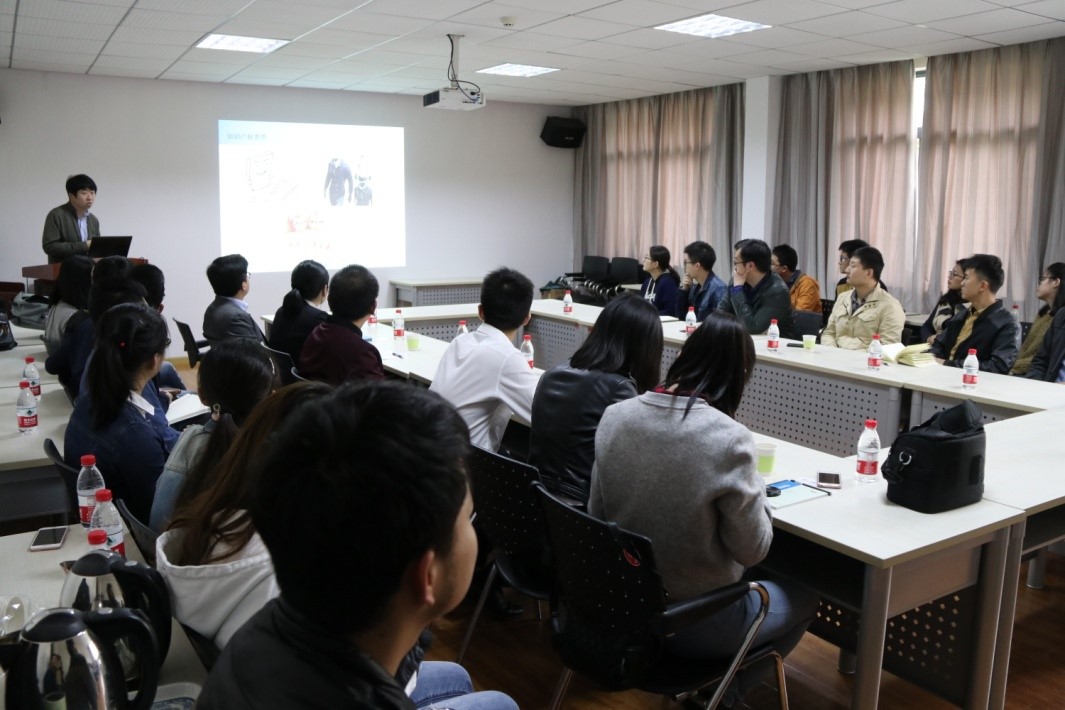 全体师生热烈欢迎湖北中心各级领导的到来,并嘱托到场师生认真聆听、普及学习专利知识。随后,湖北中心轻工机械室室主任周寻为大家播放知识产权宣传视频,并以“中国‘专利局龙’的崛起”为主题做了一个详细的报告,主要介绍了知识产权的定义、保护知识产权的重要性,并结合较为出名的实例介绍了国内外知识产权的竞争意识的现状。