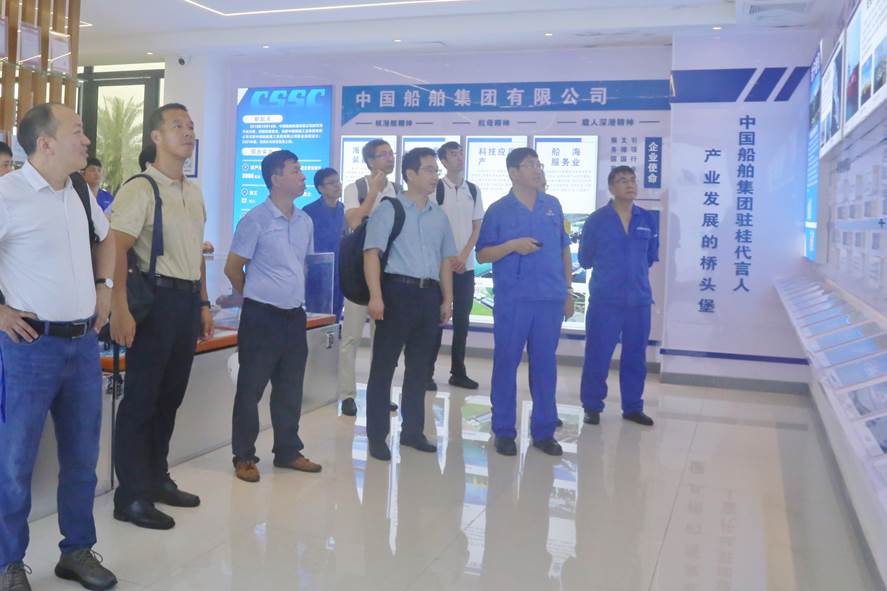 一行在中船广西公司党委副书记、总经理张新龙(97届院友)的带领下,参观了公司生产一线与展厅,详细了解了公司的生产经营情况、发展历程与发展方向。