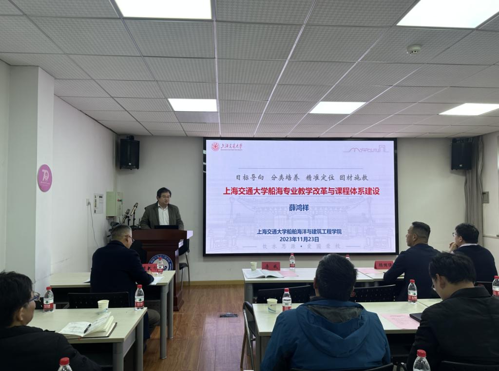 薛鸿祥教授作了题为《“目标导向 分类培养 精准定位 因材施教”上海交通大学船海专业建设与教学改革》的主题报告,介绍了上海交通大学船舶海洋与建筑工程学院以学生发展为中心开展精准定位,开展伯乐计划、荣誉计划、攀登计划、助飞计划——“大质保”体系建设,定制培养方案进行分类培养;以船舶与海洋工程专业为例,面向科技发展和产业变革,重塑课程体系,开展工程总师型、学术教授型教育;不断向深海、远海拓展,与数学、信息智能、绿色低碳等学科融合,构建复合交叉的课程知识体系,打造“船舶与海洋工程”“数学与应用数学”双学士学位项目;将专业理论、先进技术和工程经验充分融合,带动课程教学不断与时俱进的一系列先进经验与具体举措。同时,薛鸿祥教授还分享了上海交通大学于2021年作为新一轮本科教育教学审核评估试点高校开展迎评促建的工作经验。