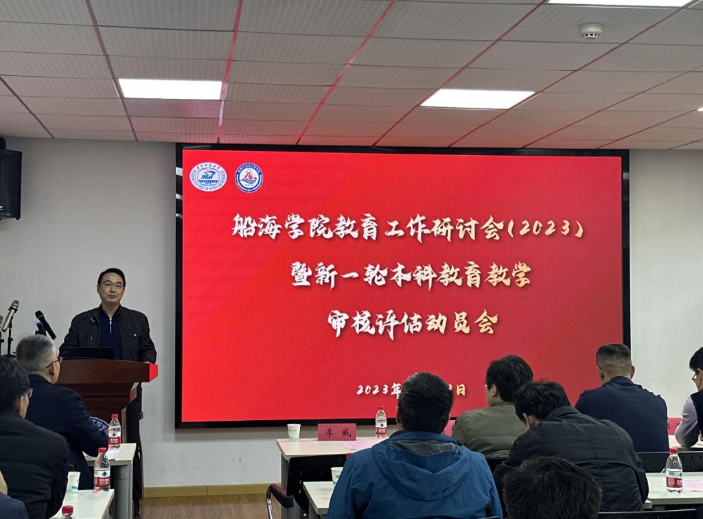 召开了学院教育工作研讨会暨新一轮本科教育教学审核评估动员会,会议邀请上海交通大学船舶海洋与建筑工程学院党委副书记薛鸿祥教授作专题报告。本科生院教务工作办公室副主任周奇、学院党委书记顾国强、院长李威出席,全体教职工和部分学生代表参会。会议由副院长李天匀主持。