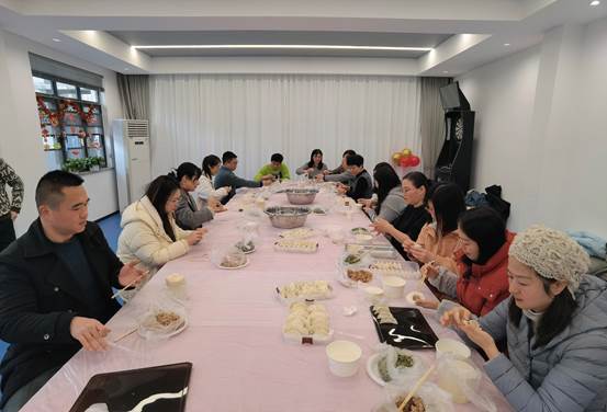 与此同时,学院工会在活动室组织全体教职工们开展“快乐包饺子 温暖迎新年”新春联谊活动。老师们积极参与、热情高涨,大家齐心协力、分工有序、精诚合作,每个人都大显伸手,整个活动沉浸在欢乐祥和、喜气洋洋的气氛中。