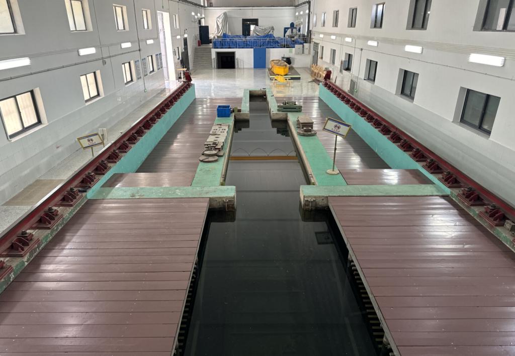 船模拖曳水池实验室是重要的实习实训基地与科普教育基地,试验水池长175米、宽6米、水深4米,水池端部有造波系统,是国际船模拖曳水池会议(International Towing Tank Conference,简称ITTC)正式成员。近年来在学校实设处与学院的大力支持下,先后开展了拖车系统研制、造波机改造、船池照明系统改造、船池环境5S(整理、整顿、清扫、清洁、素养)建设等工作,实验测试能力得到较大提升,环境改善明显。