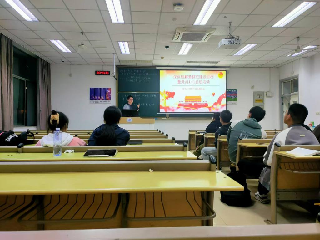 本科生荣誉班级创建管理实施办法》,查找了班级在思想建设、课程学习、科创实践和志愿服务等方面的表现与已有黄群班的差距,分析了目前班级建设中存在的问题和不足,鼓励同学们在新的学期同学们应再接再厉、全面发展,以创建黄群班为目标共同努力。