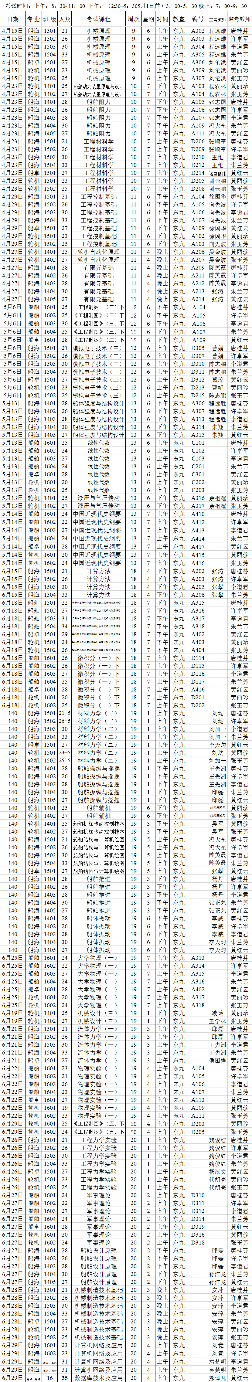 老王论坛 2016~2017学年第二学期考试安排(一)