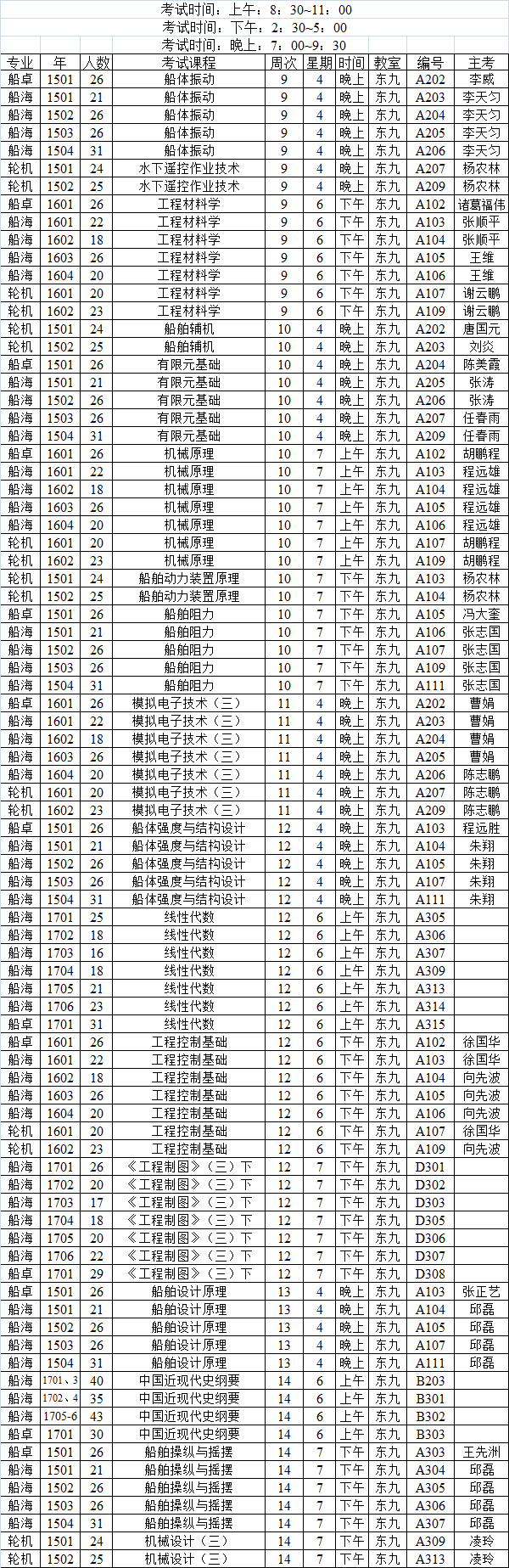 2017~2018学年第二学期考试安排(一)