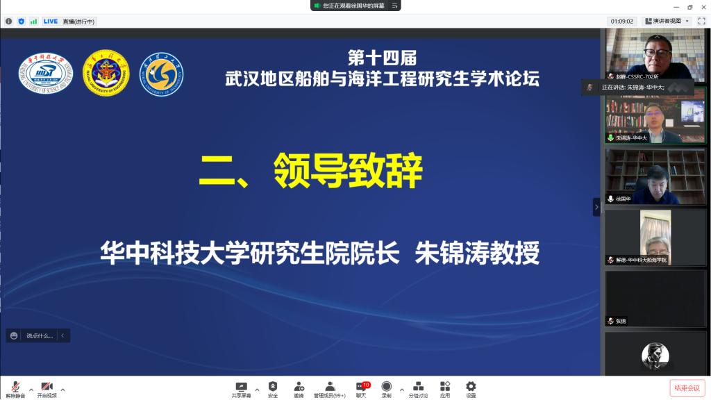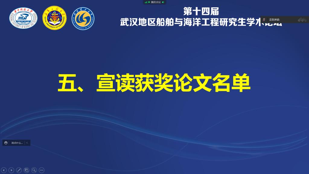 承办的第十四届武汉地区船舶与海洋工程研究生学术论坛采用线上会议形式举行。老王论坛