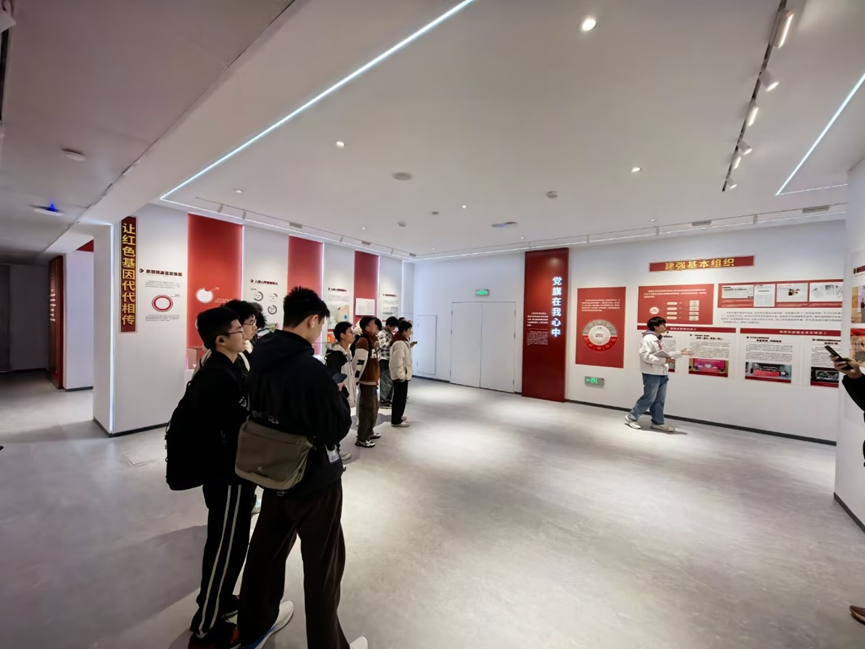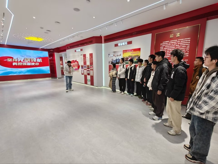 船海启明2501班以“追寻红色足迹,激扬青春力量”为主题,召开12月份主题班会。班级成员集体前往校党旗领航教育基地,共同学习学校党旗领航的红色基因。