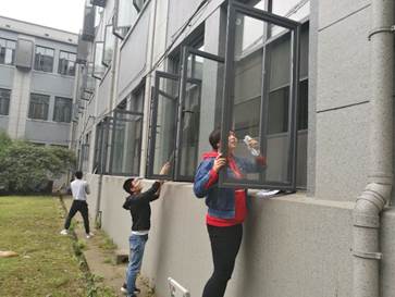 活动之日将有众多优秀校友返校,为以更好的面貌和姿态迎接师兄师姐“回家”,各支部组织党员同志对东二楼进行清洁打扫,也进一步体现党员先锋模范作用和奉献服务意识。清洁打扫内容包括实验室内部,走廊杂物清理,窗台灰尘及窗户玻璃清理以及院内落叶清理等。