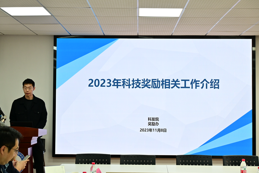 李威院长介绍了本学院科技奖励、国基金项目申报工作相关情况;徐新盛主任介绍了国基金人才项目工作情况和最新政策;陈书田主任介绍了科技奖励工作情况和最新政策。