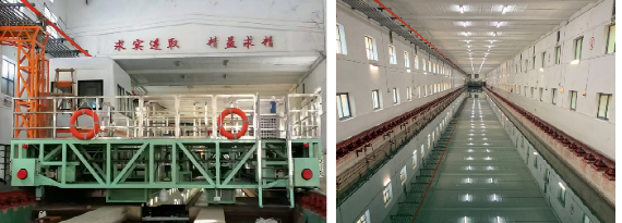 (a)拖车系统 (b)试验水池