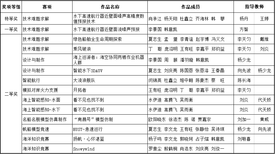 聚焦大学生创新创业能力培养,在政策、资金等方面加大投入,使创新创业教育步入良性发展。学院积极组织并参与各级各类科创赛事,顺利承办本届全国海洋航行器设计与制作大赛华中区域赛。科创活动覆盖全体本科生,科创育人成效显著,并推动产学研一体化发展,拓展船海学科建设和专业发展空间,切实增强船海学生的综合素质、原创能力及实践动手能力,为“加快建设海洋强国”做好青年人才储备。