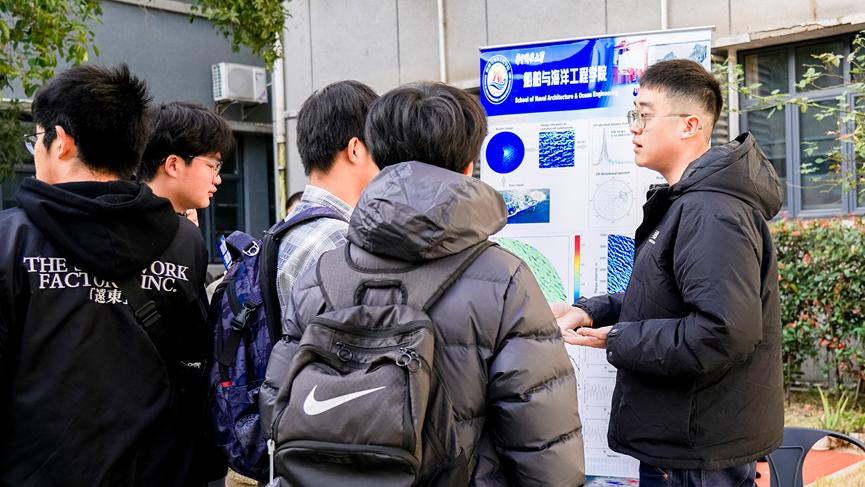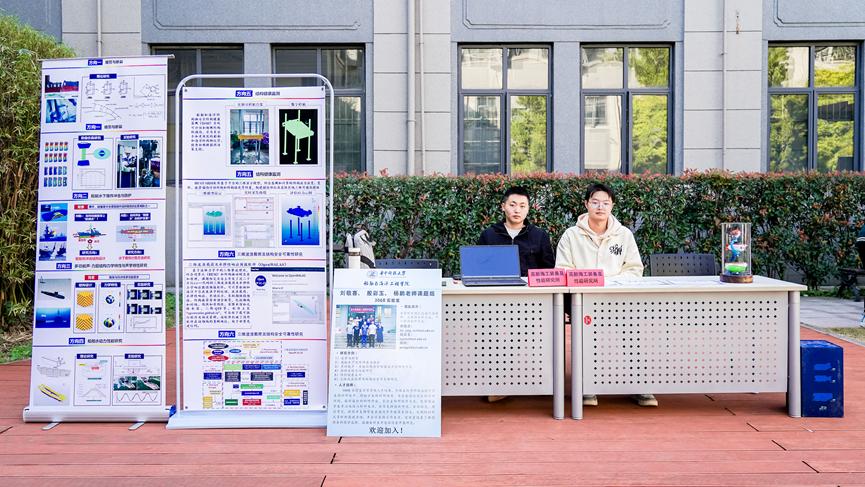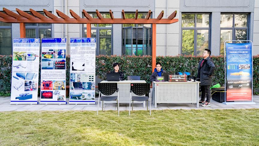 展出研究所以丰富的内容、新颖的呈现形式引得前来参观的同学们驻足学习,发放课题组宣传页,邀请同学们现场体验科研作品,一起探讨控制原理……各展区研究生们细致讲述着船舶知识,创意游戏区前欢声笑语,久久洋溢在院内广场。