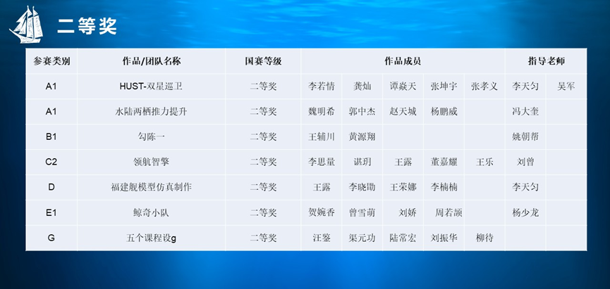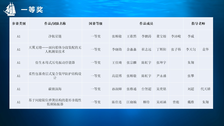 全国海洋航行器设计与制作大赛我校获奖团队如下: