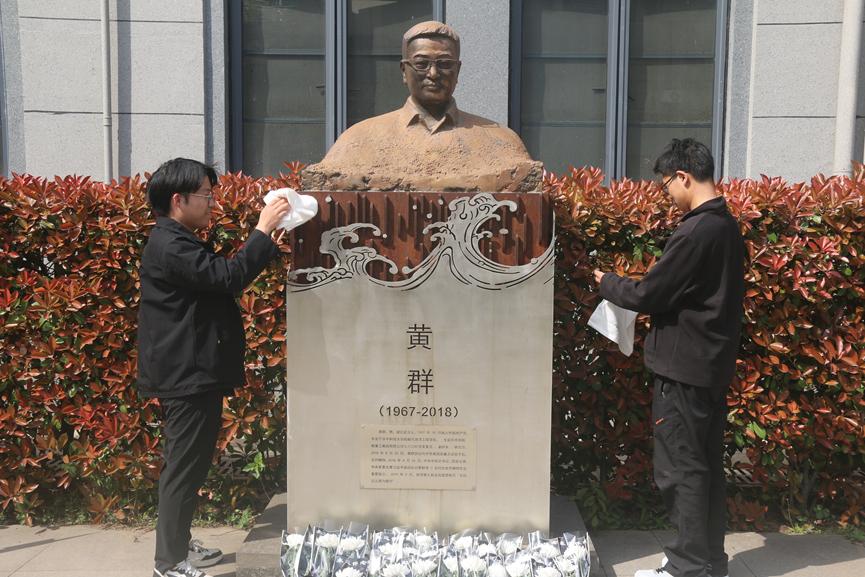 擦拭黄群塑像,擦亮信仰之光。4月3日,学生代怀着崇敬之心,认真细致地擦拭黄群塑像。每一次擦拭都饱含着对黄群师兄深深的敬意与纪念之情,每一次擦拭都让心中的信仰之光更加明亮。