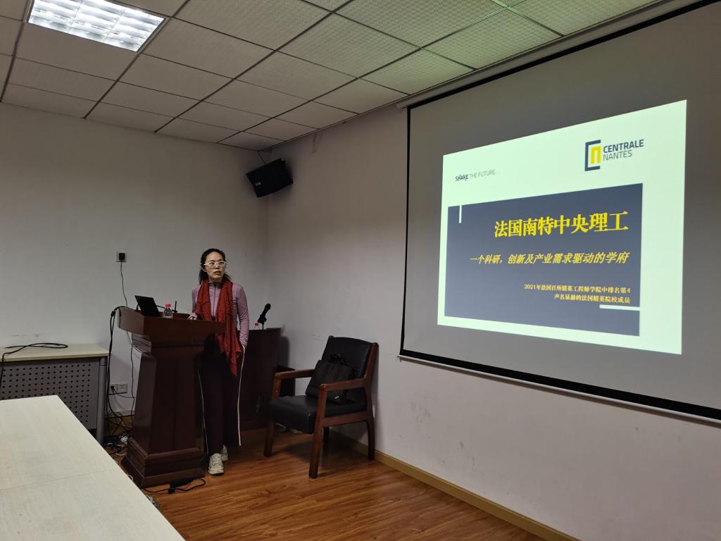 的“3+1+2”本硕连读国际合作项目等内容,为同学们开拓国际视野、了解法国南特中央理工大学的学习研究、就业及申请情况提供了生动而全面的讲座内容。讲座结束后,李春来老师与同学们进行了充分交流,就同学们关心的出国留学经济、安全等问题进行了解答。